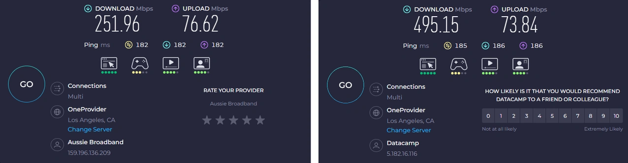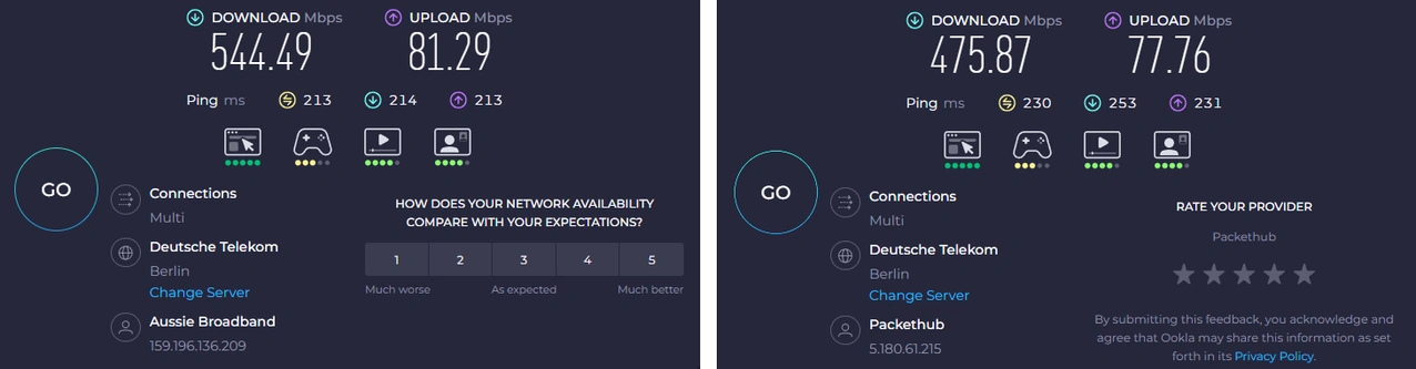 P2P Servers – Not tested. P2P testing introduces real-world legal risk and affiliate-compliance concerns, even when using open-source torrent files. For the safety of our testing environment and to maintain strict compliance with affiliate guidelines, P2P performance is not benchmarked.