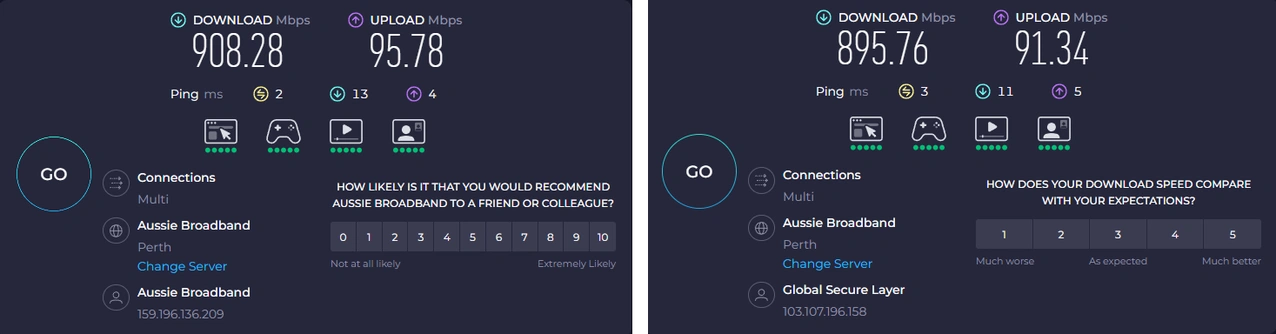 1. Real-World Environment All tests were run from a 1 Gbps residential fibre line in Perth, Australia - one of the most geographically isolated major cities in the world. If a VPN is fast here, it’s fast anywhere.