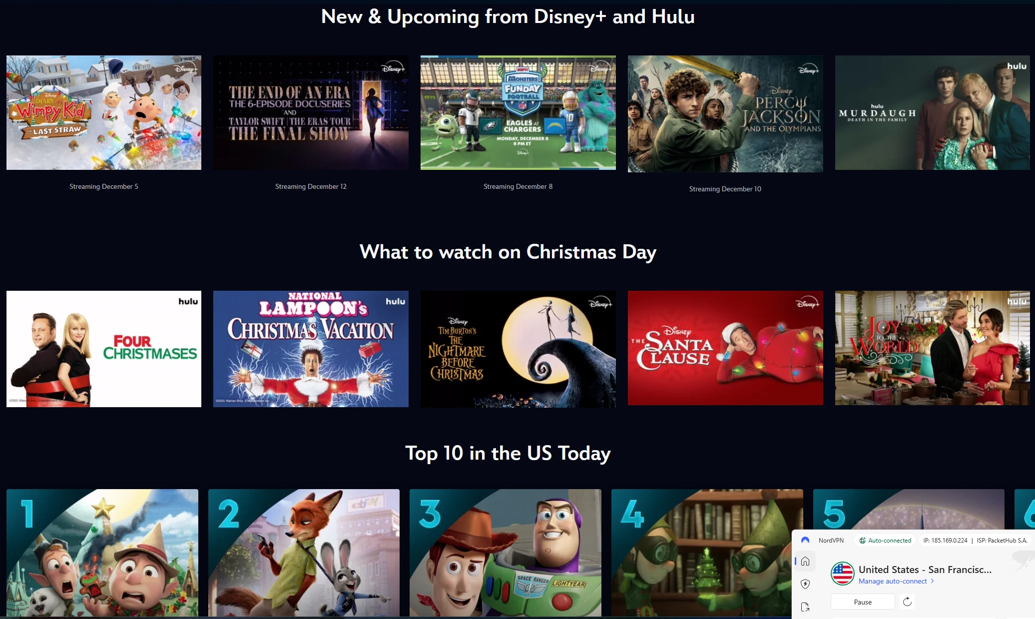 NordVPN is a strong pick for watching shows and movies from other countries and even while travelling. In my real-world testing environment, it worked reliably with: