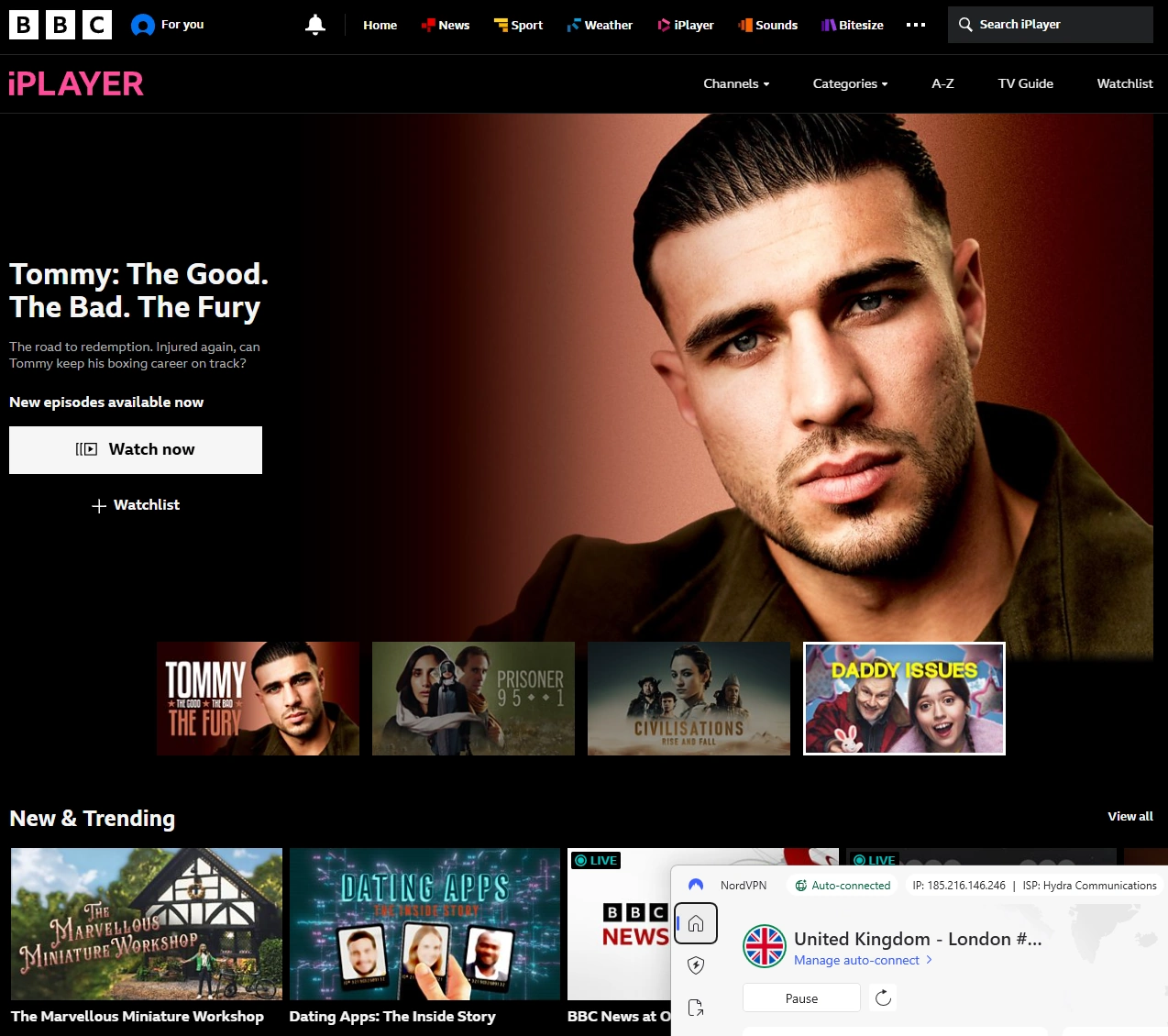 Speeds stayed consistently strong, so HD playback felt smooth and uninterrupted. Whether you’re watching international titles or your usual apps like BBC Iview, NordVPN keeps everything fast, secure, and easy to access.