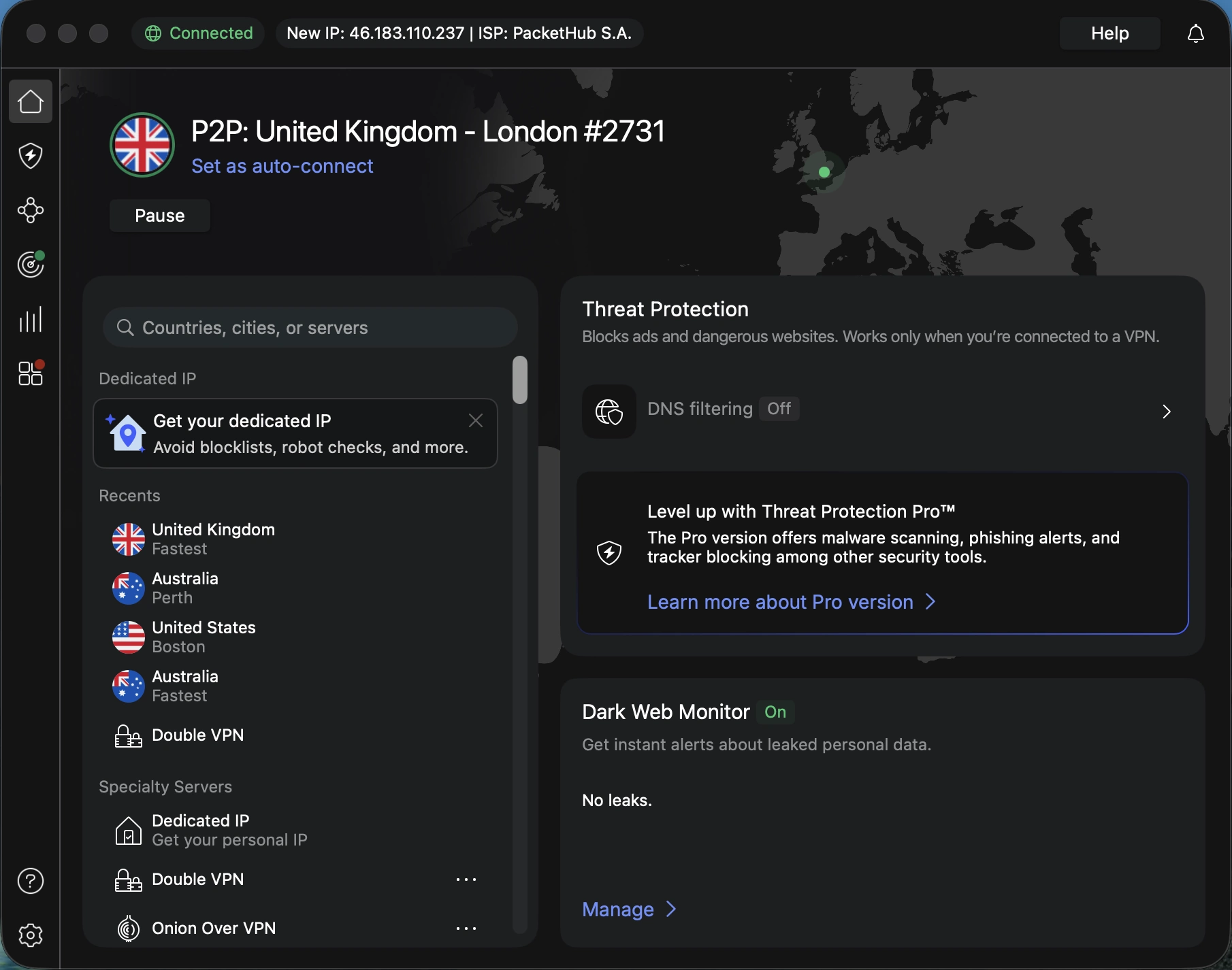 NordVPN also includes Threat Protection in its standard plan. It blocks harmful sites and trackers at the app level, and I will be expanding my testing of this in the next stage of my security evaluation.