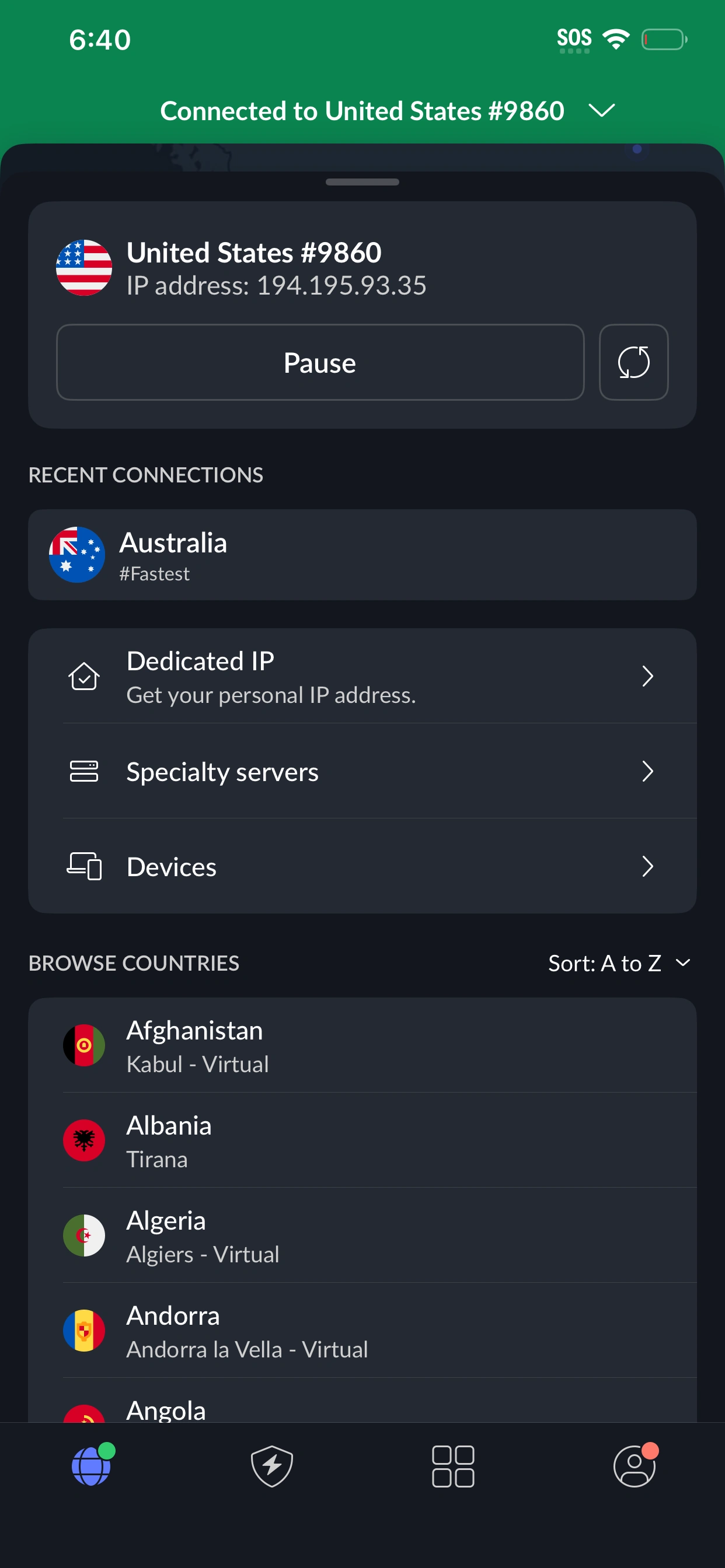 You can also turn on Split Tunneling, which lets you choose which apps use the VPN and which don’t - for example, you could listen to music on your regular internet, while keeping your private browsing protected with the VPN.