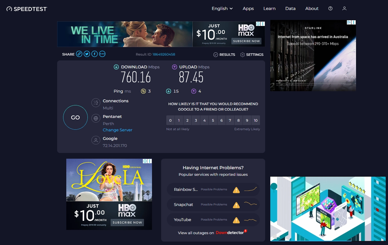 I run multiple speed tests on a modern home broadband connection to understand how the VPN affects everyday activities like streaming, browsing, downloads, and video calls. To assess global performance, tests are conducted across servers in North America, Europe, Asia, and Australia, with results reflecting sustained use rather than one-off measurements.